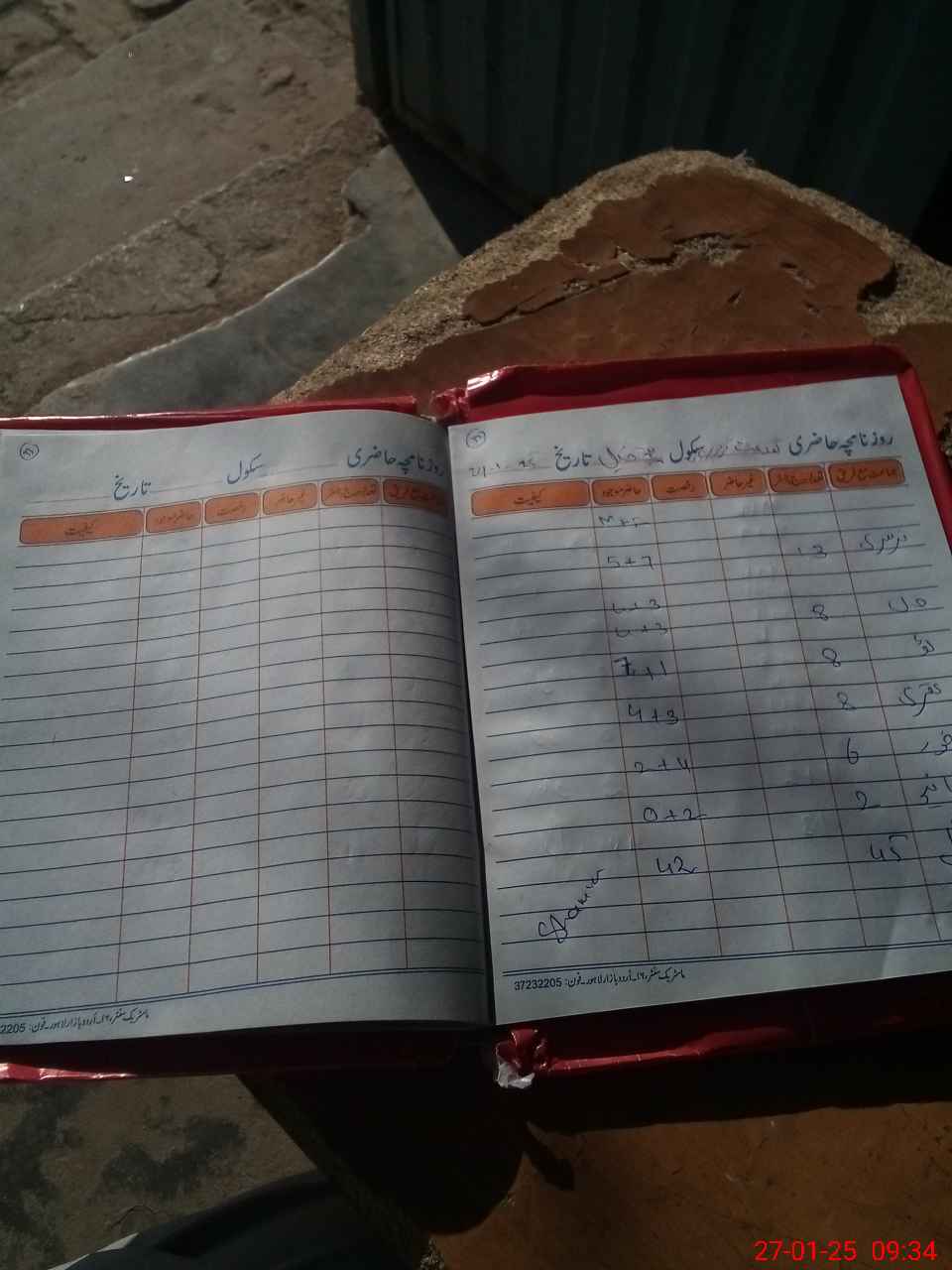 | Remarks (Use Separate Page if Required): Head teacher Shamima Akhtar NIC 3830138125440 is physical absent PST Sadia Nishant NIC 3830118048892 is physical absent On Line leave record not available FTF record not available School council meeting record not available Whole School building is dangerous Roznamcha not maintained | |||||