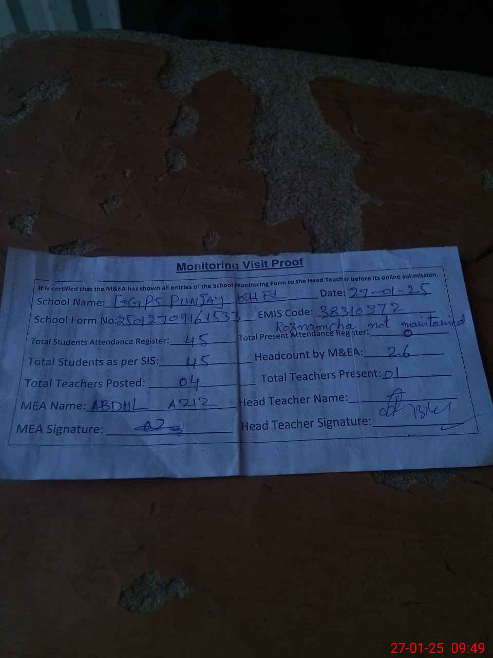 | EMIS Code: 38310372 | Name of School: GGPS PUNJAY KHEL | |||