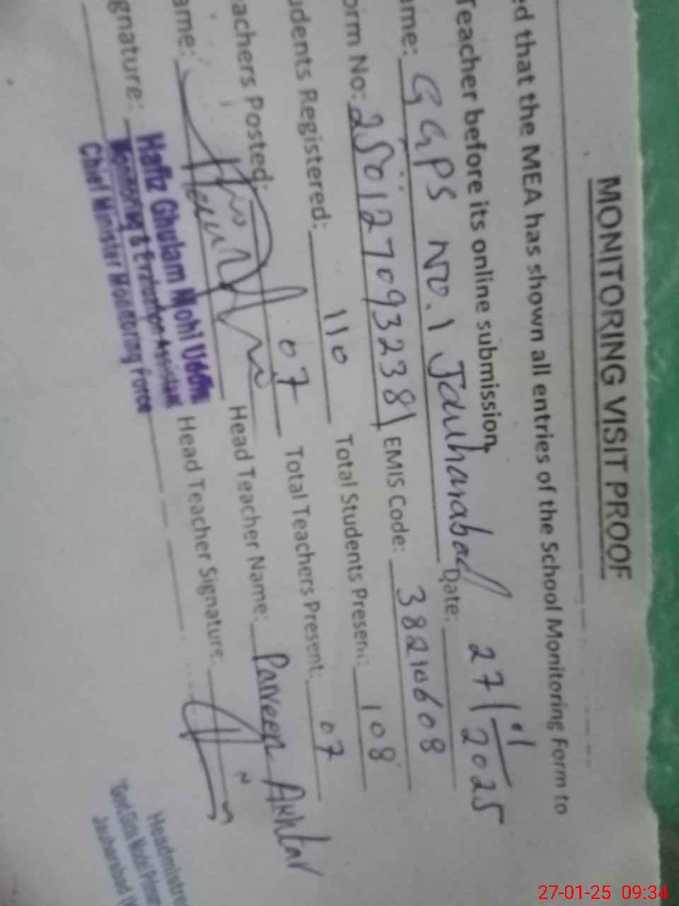 | EMIS Code: 38210608 | Name of School: GGPS NO. 1 JAUHARABAD | |||