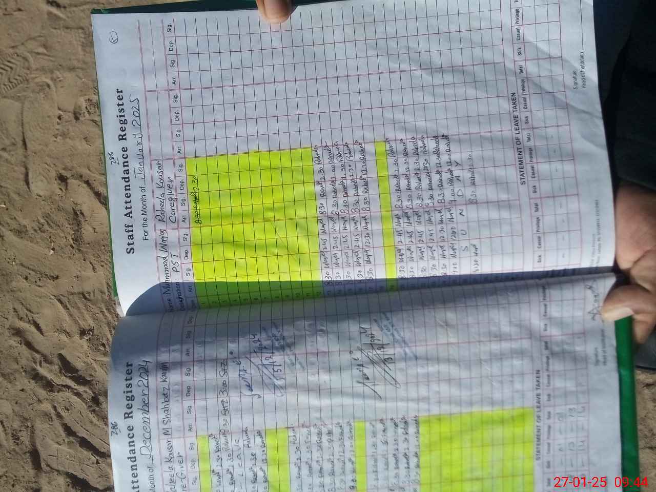| CNIC | Full Name | Designation | R/C | Absence During Last Calender Month |