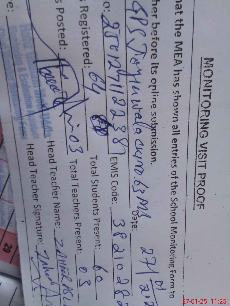 | EMIS Code: 38210282 | Name of School: GPS JOYIA WALA CHAK NO. 63 MB | |||