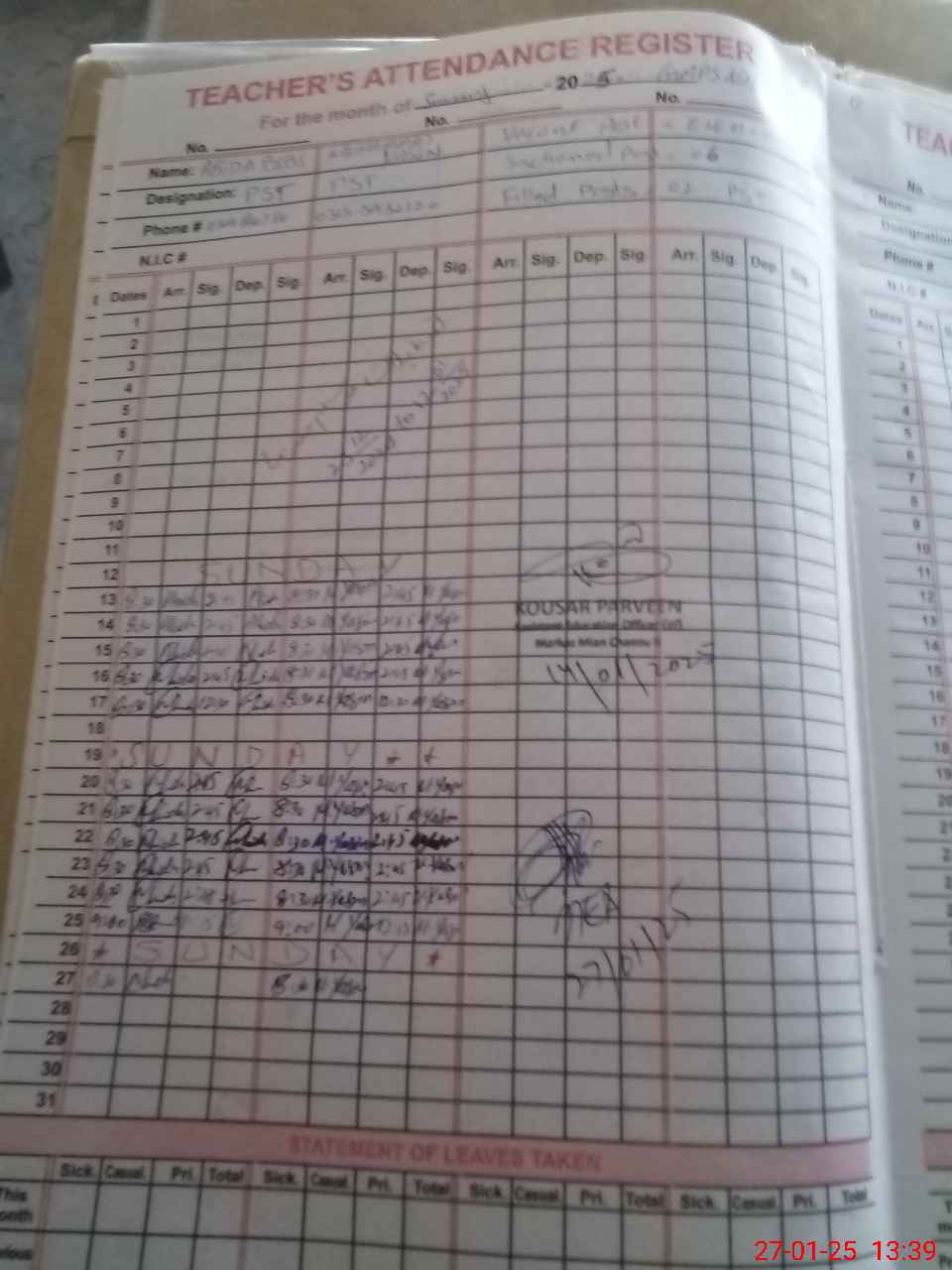 | Name: Ab**** Bi**** Designation: (School Headmaster's/Headmistress's) ESE (Arts) Phone/Cell Number: 03**** |