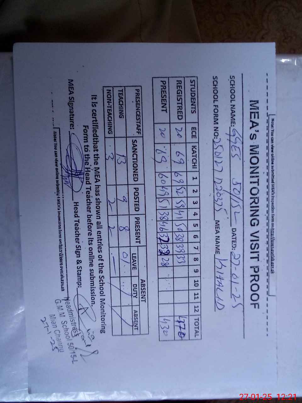 | EMIS Code: 36430098 | Name of School: GGES 50/15-L, MIAN CHANNU | |||