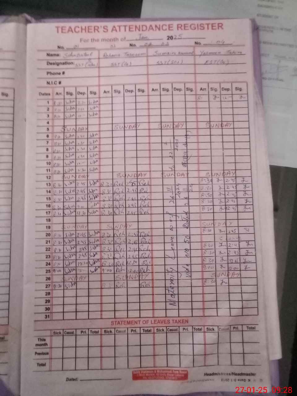 | 38**** | Su**** Ka**** | Regular | 31 | 0 | 0 | 31 | 0 | 0 | 0 | 0 | 0 | Maternity | |