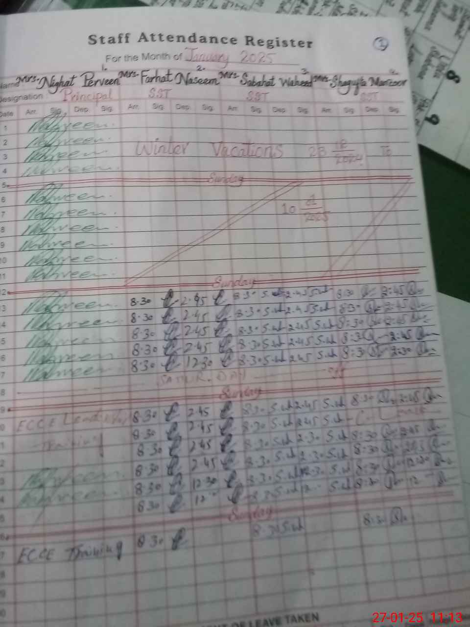 | 31**** | Ni**** Pa**** | PRINCIPAL | Regular | 0 | 0 | 0 | 0 | 0 | 0 | 0 | 0 | 0 | On Training |