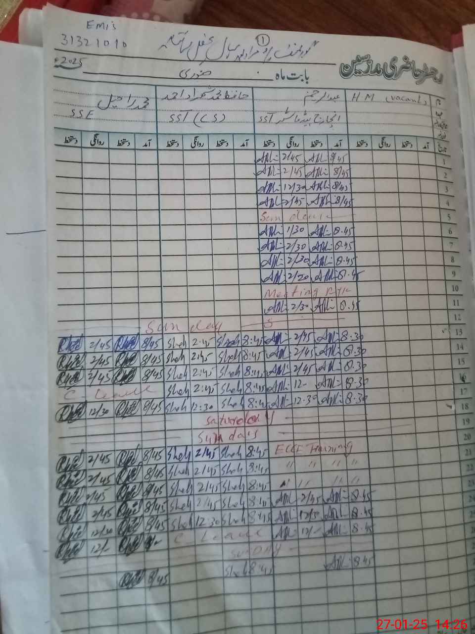 | CNIC | Full Name | Designation | R/C | Absence During Last Calender Month |