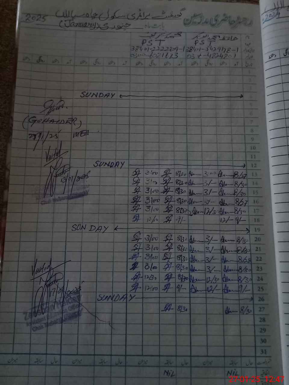 | Name: MAb**** Ba**** Designation: (School Headmaster's/Headmistress's) PST Phone/Cell Number: 03**** |