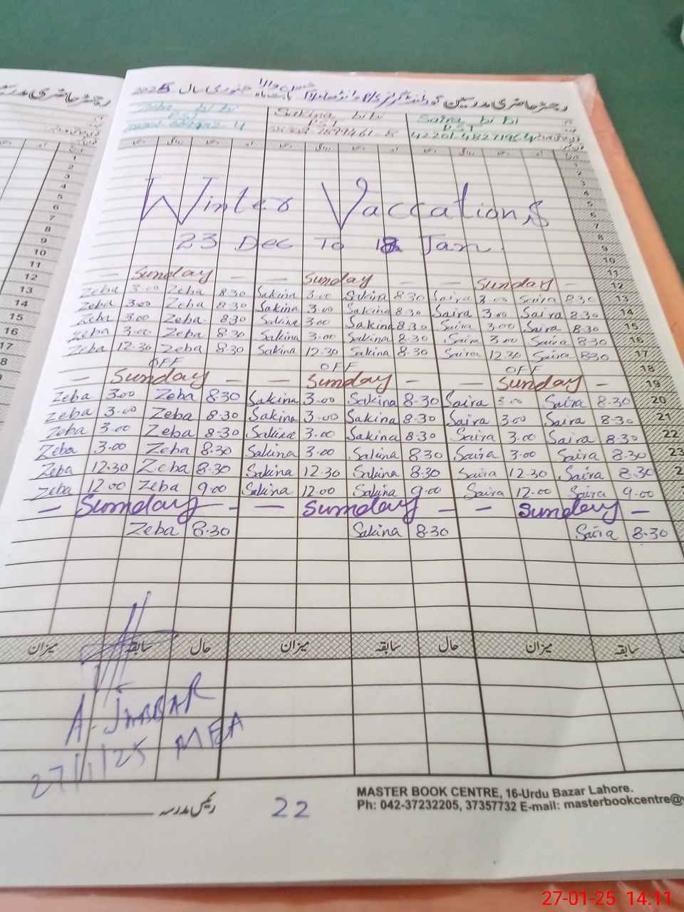 | CNIC | Full Name | Designation | R/C | Absence During Last Calender Month |