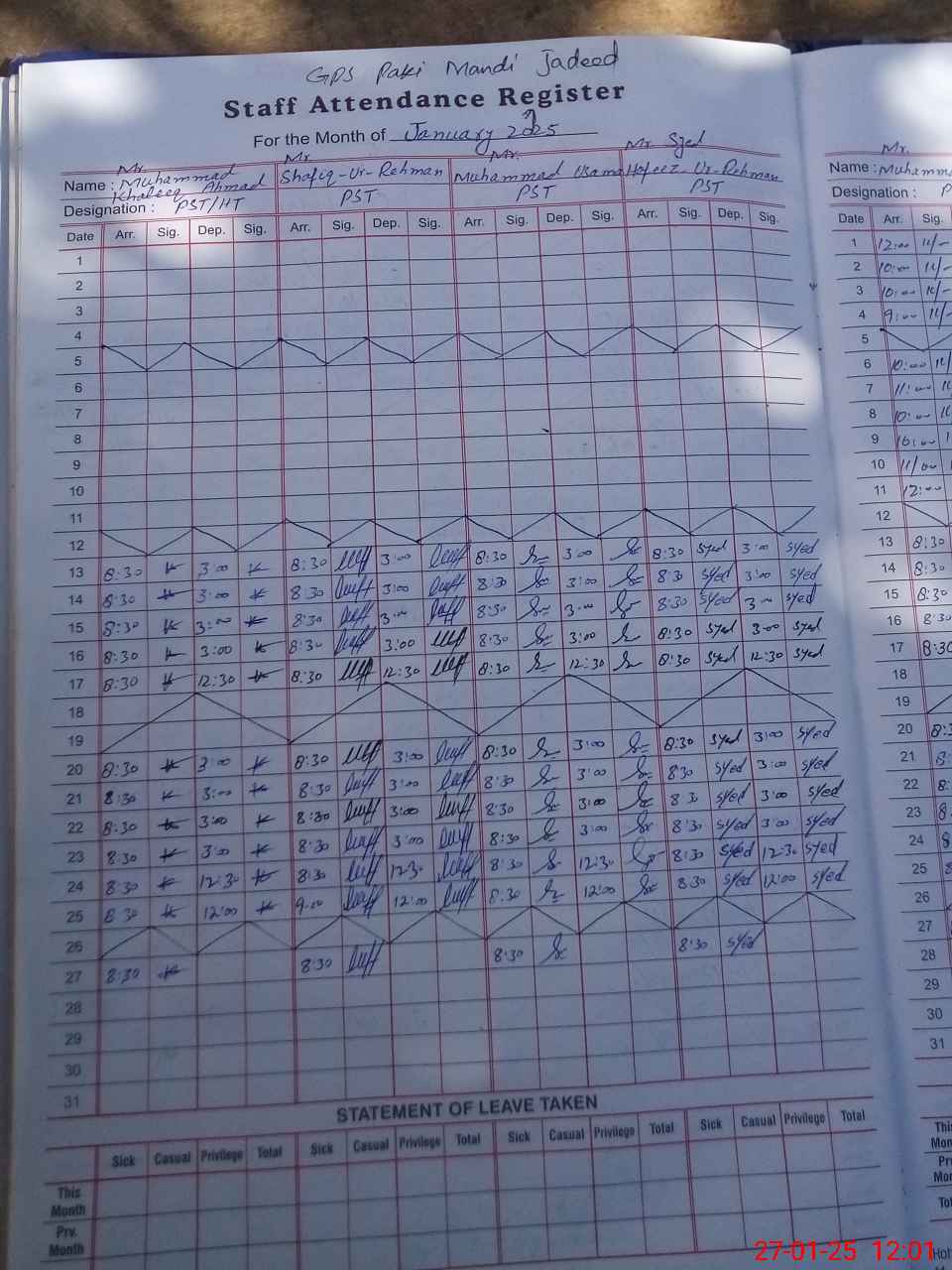 | CNIC | Full Name | Designation | R/C | Absence During Last Calender Month |