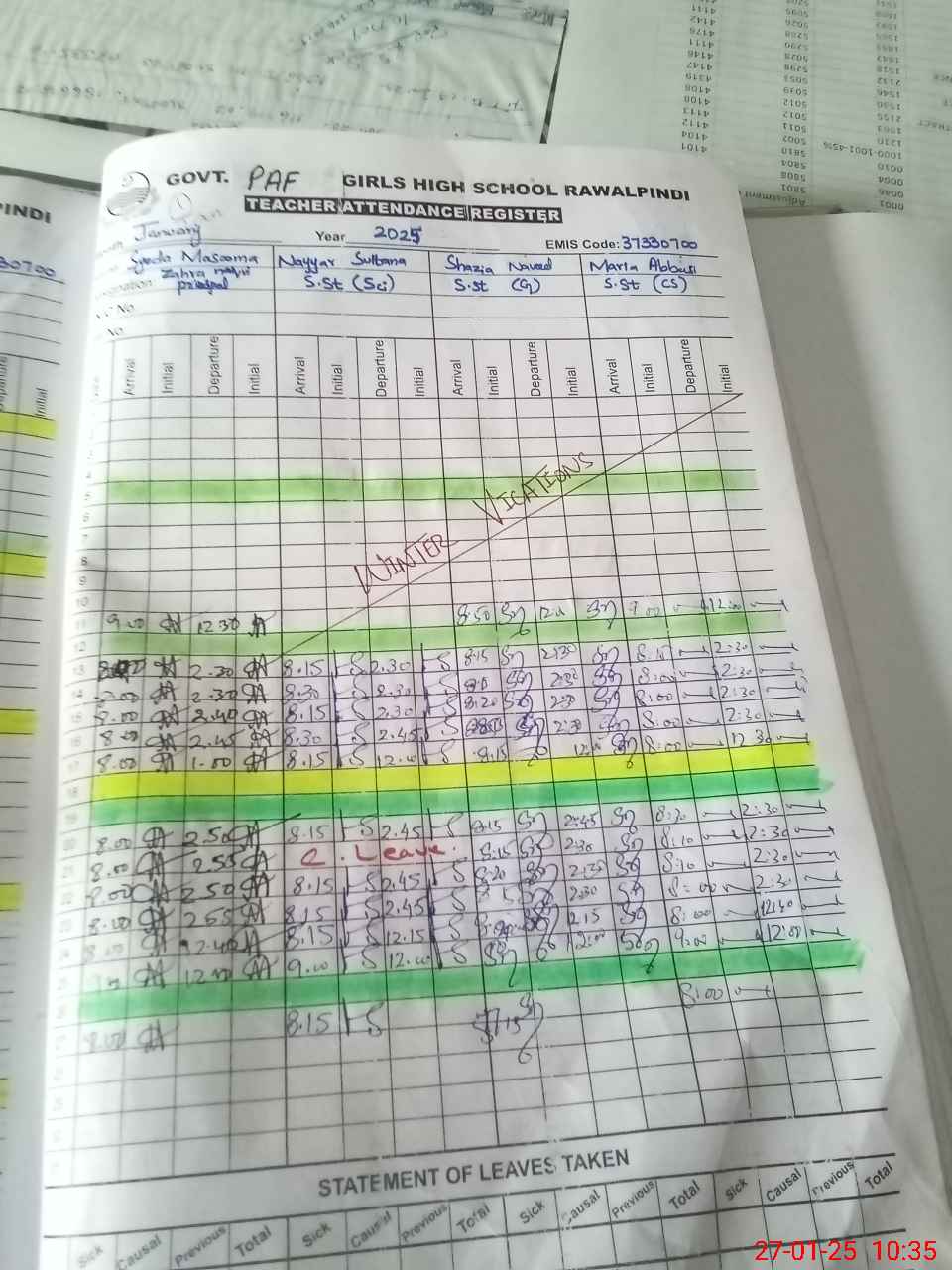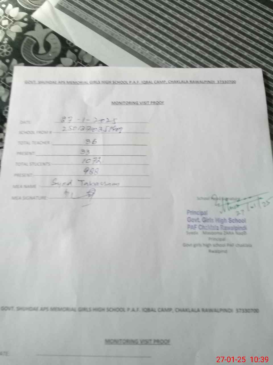 | EMIS Code: 37330700 | Name of School: GGHS PAF BASE CHAKLALA | |||
