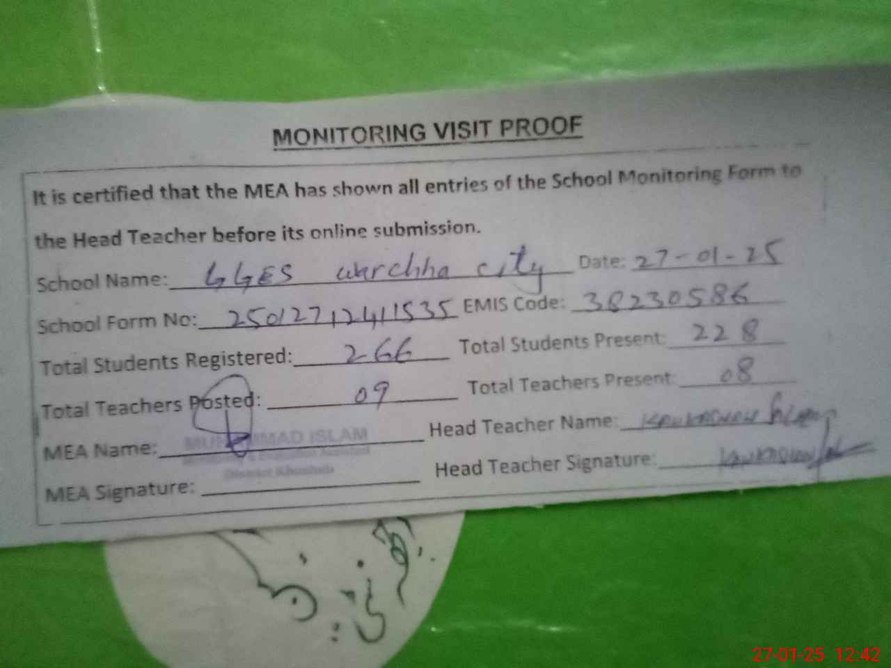 | EMIS Code: 38230586 | Name of School: GGHS WARCHHA CITY | |||