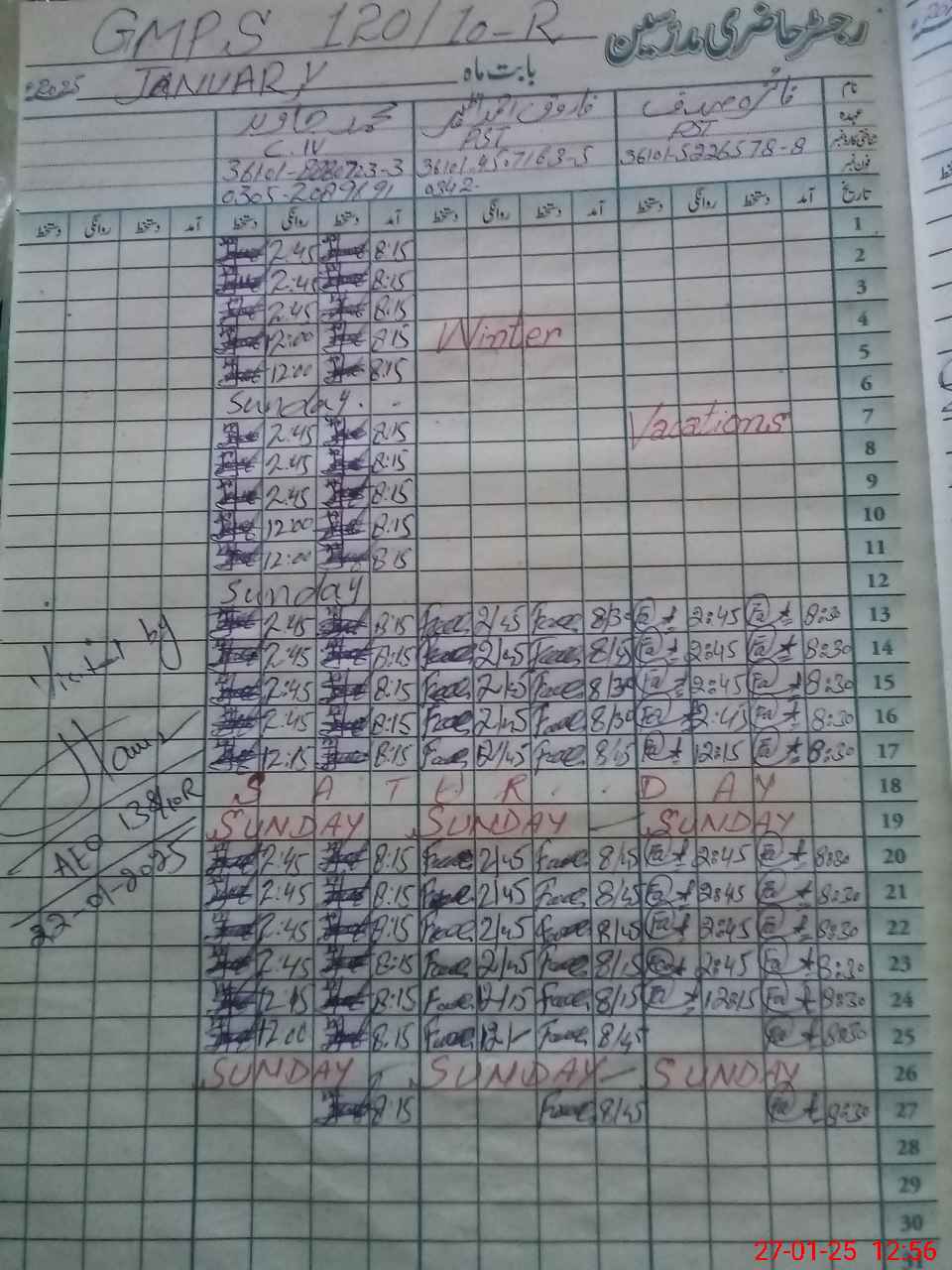 | CNIC | Full Name | Designation | R/C | Absence During Last Calender Month |