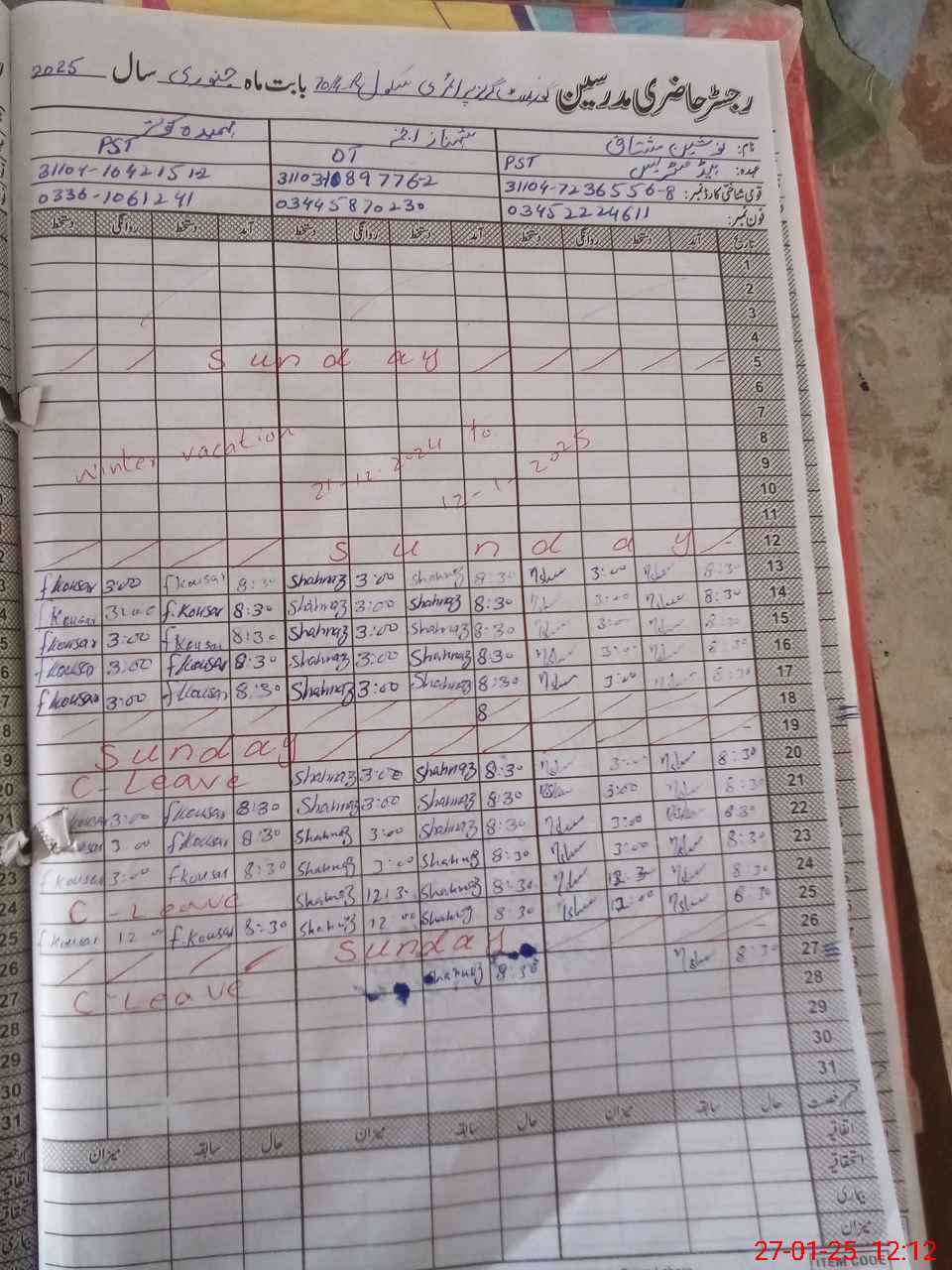 | Name: No**** Mu**** Designation: (School Headmaster's/Headmistress's) PST Phone/Cell Number: 03**** |