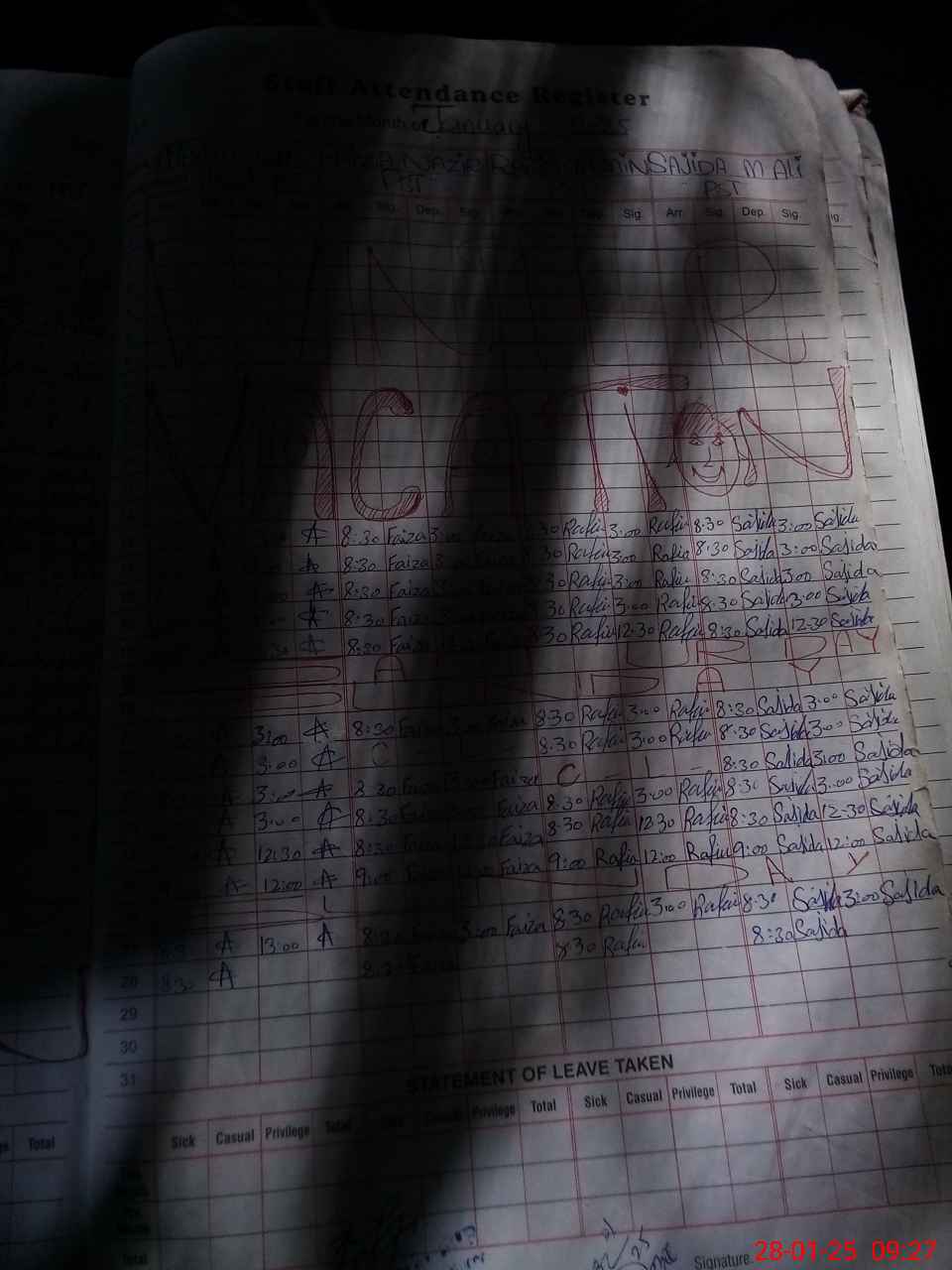 | Leave | Duty | Absent | Maternity | Medical | Ex- Pak |
