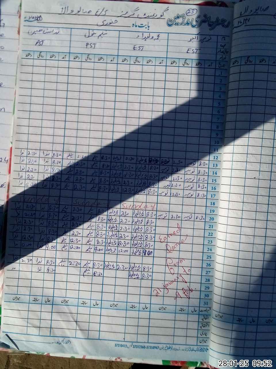 | CNIC | Full Name | Designation | R/C | Absence During Last Calender Month |