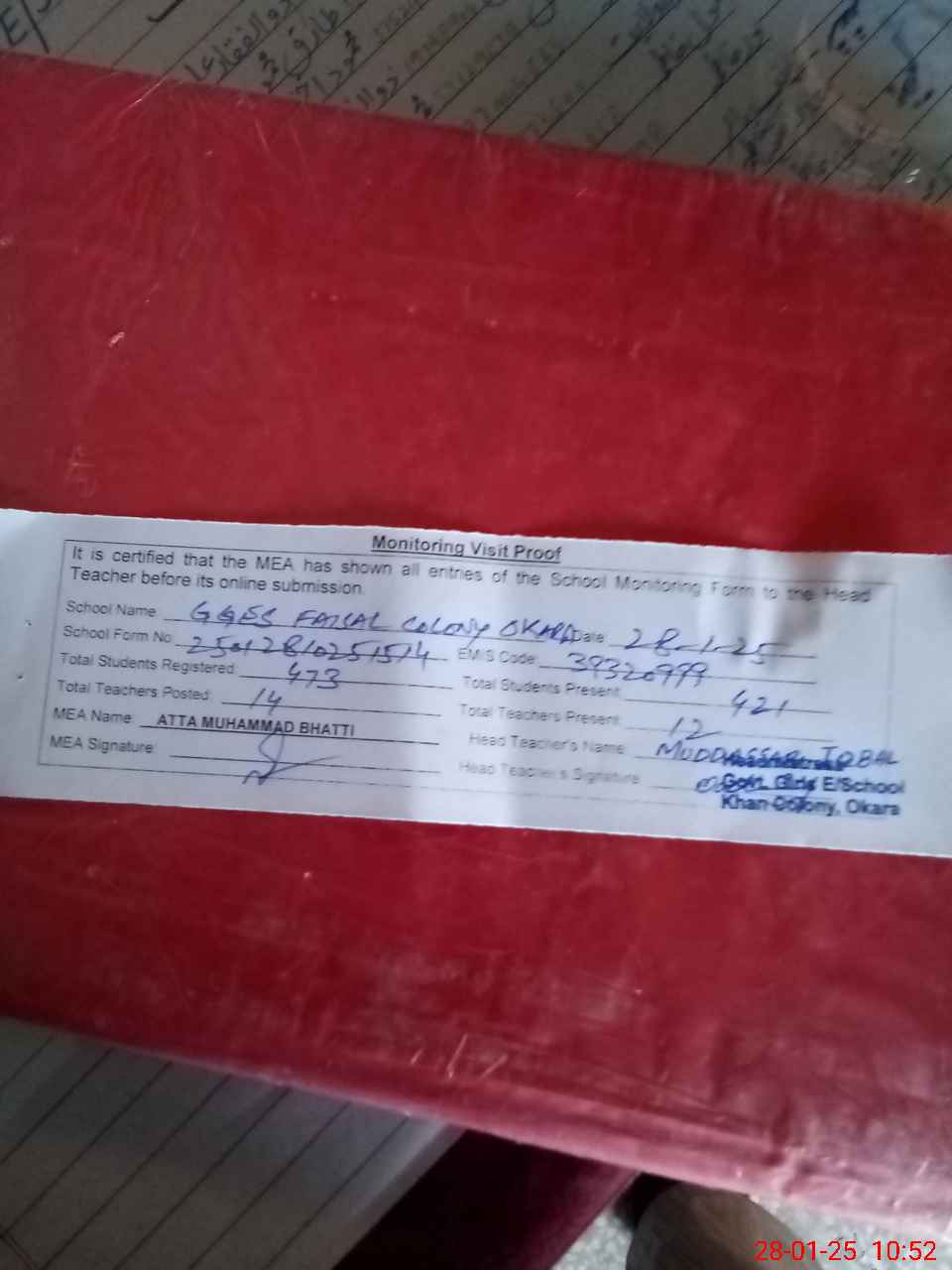 | EMIS Code: 39320999 | Name of School: GGES FAISAL COLONY OKARA | |||