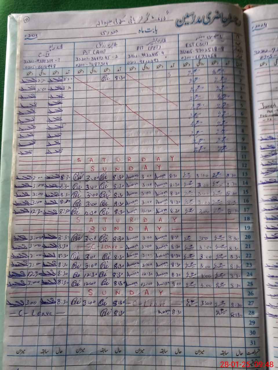| CNIC | Full Name | Designation | R/C | Absence During Last Calender Month |