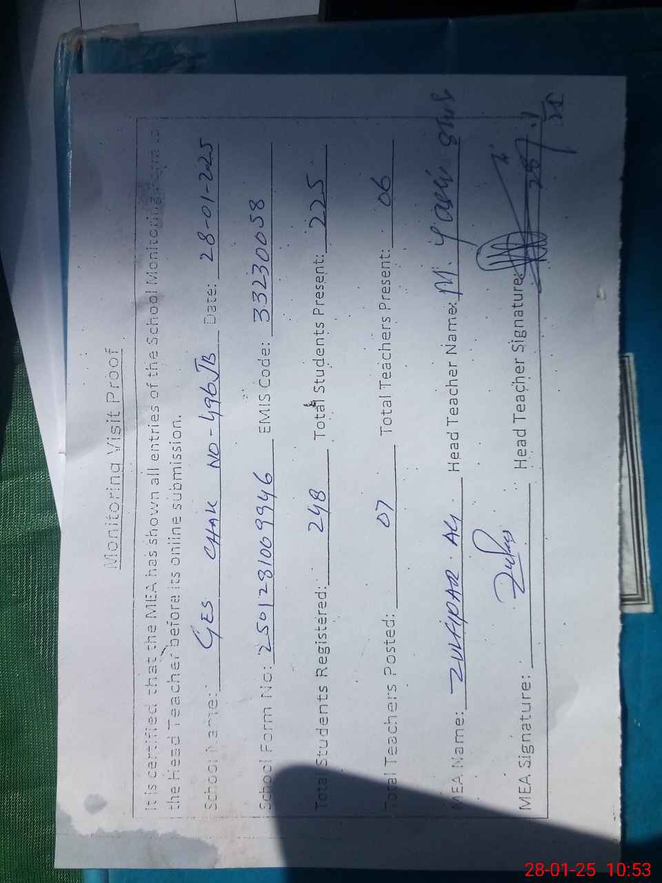 | EMIS Code: 33230058 | Name of School: GES CHAK NO 496 JB | |||