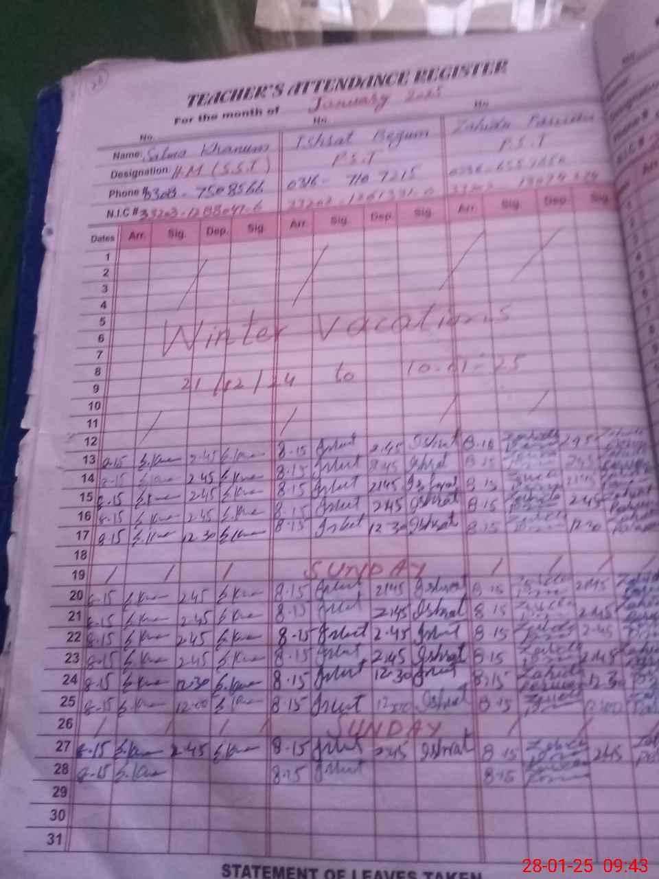 | Name: SA**** KH**** Designation: (School Headmaster's/Headmistress's) S.S.T.(SC) Phone/Cell Number: 03**** |
