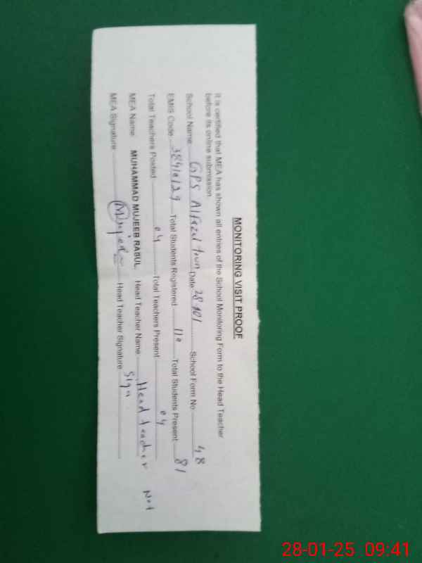 | EMIS Code: 38410129 | Name of School: GPS MADRISA TUL ISLAMIA AL-FAZAL TOWN BHALWAL | |||