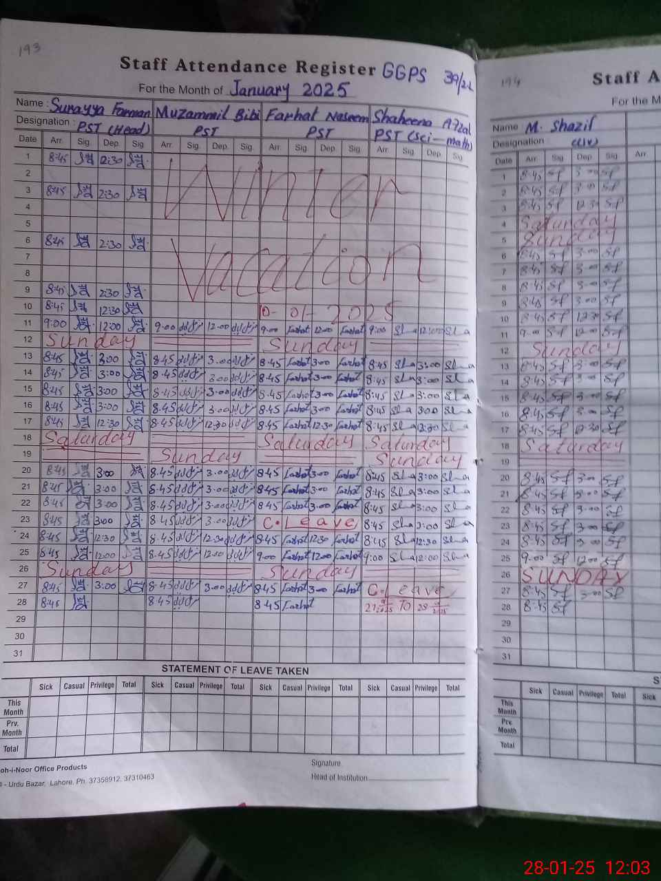 | Name: Su**** Fa**** Designation: (School Headmaster's/Headmistress's) PST Phone/Cell Number: 03**** |