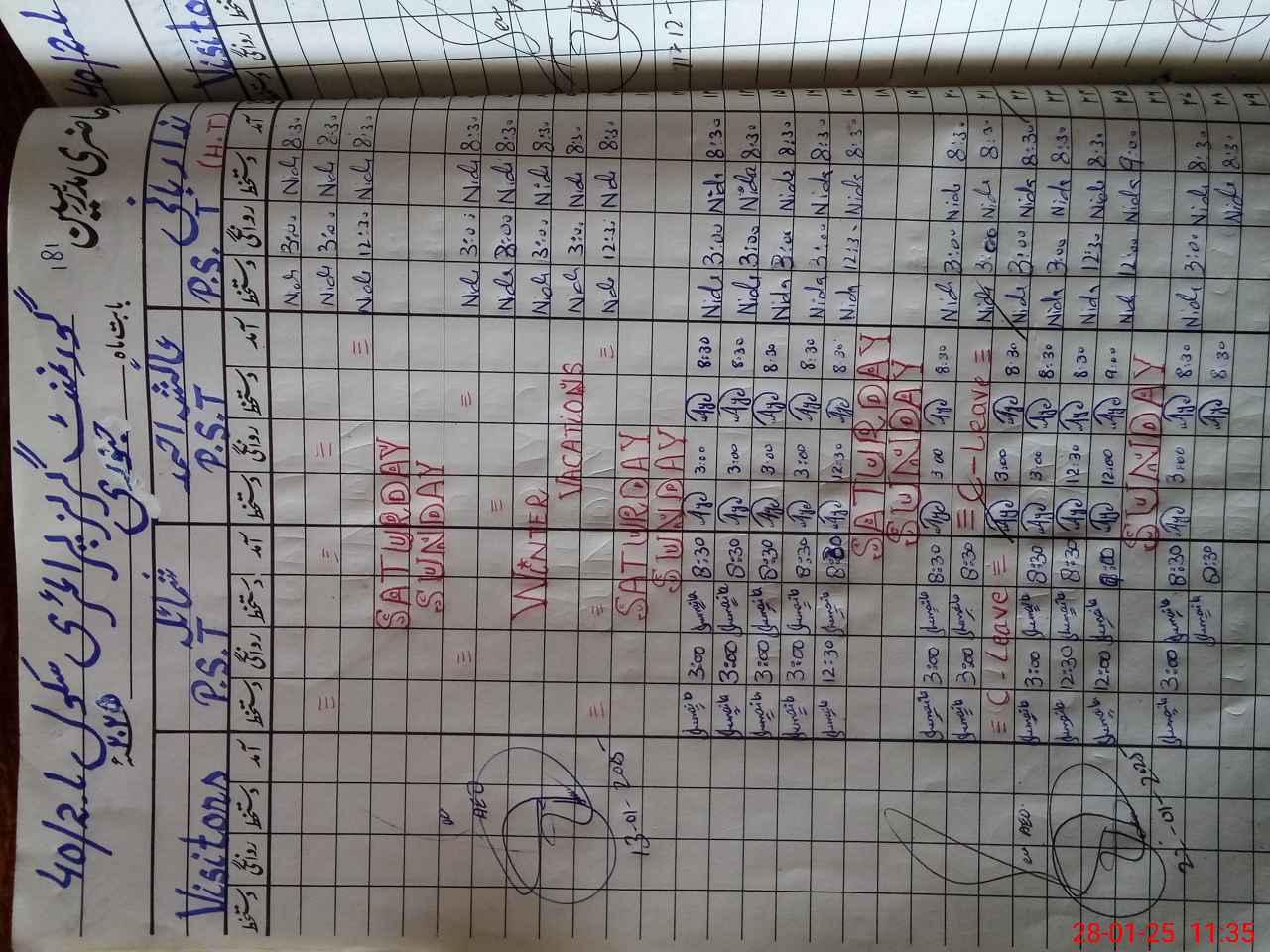 | Leave | Duty | Absent | Maternity | Medical | Ex- Pak |