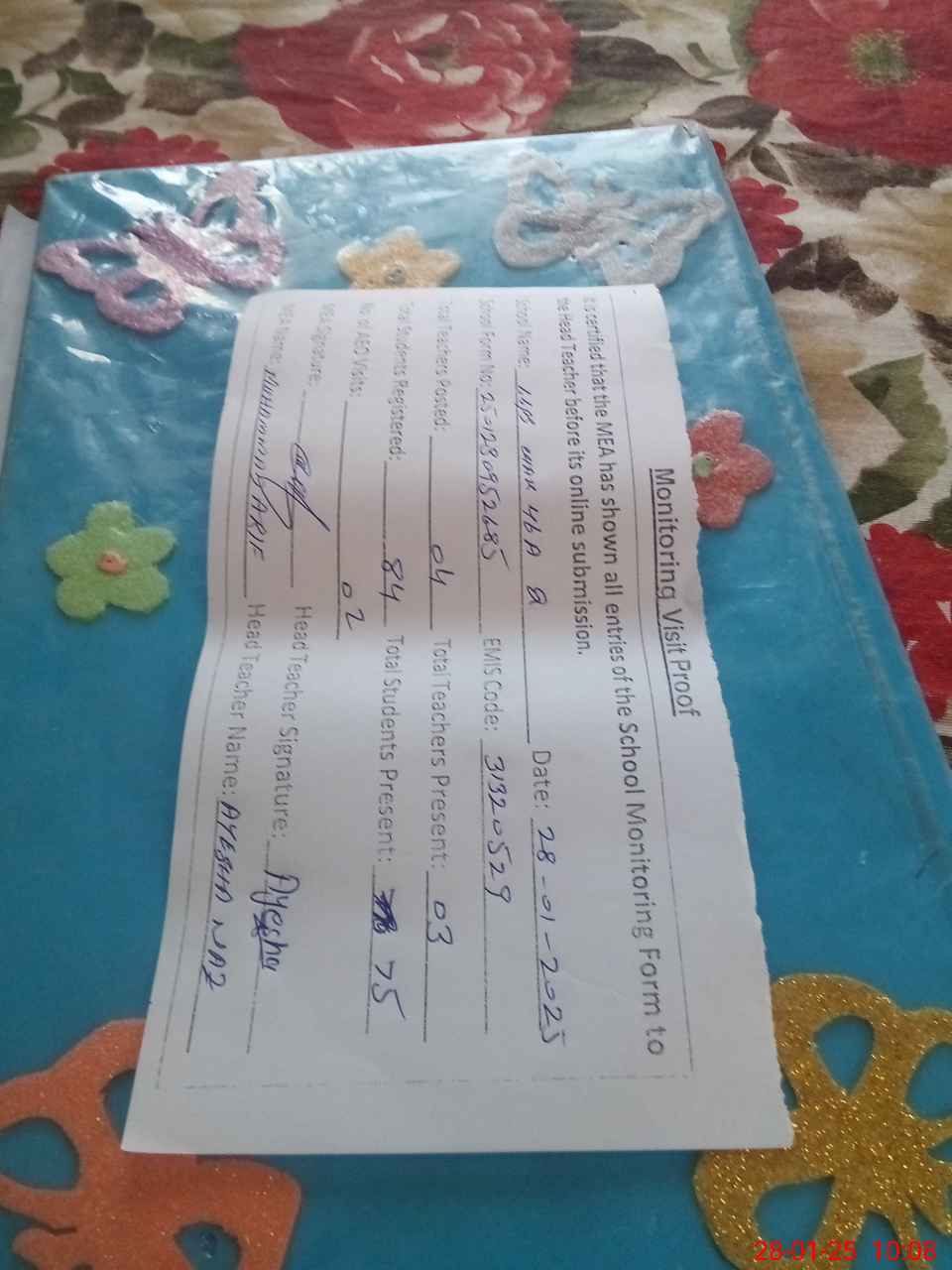 | Attendance Register | Head Teacher | MEA with School | Visit Proof |