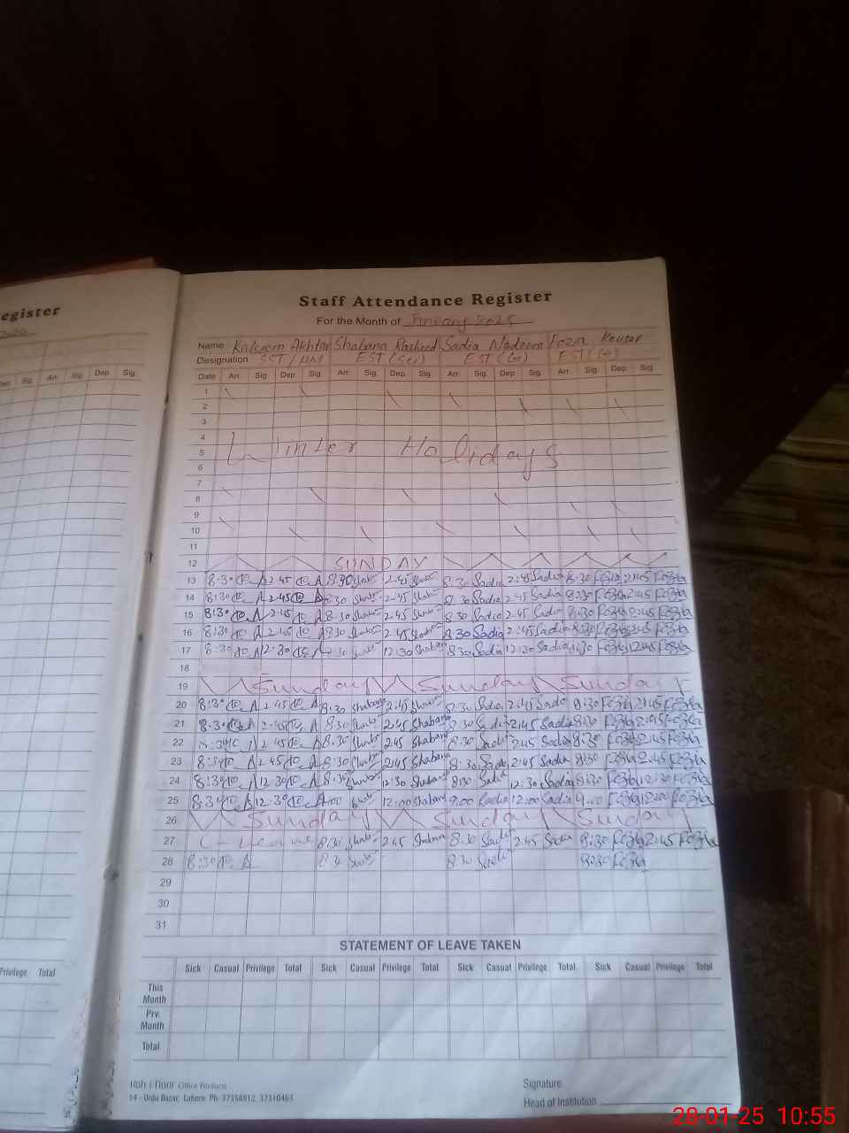 | 31**** | Sa**** Kh**** | PST | Regular | 0 | 0 | 0 | 0 | 0 | 0 | 0 | 0 | 0 | Maternity |