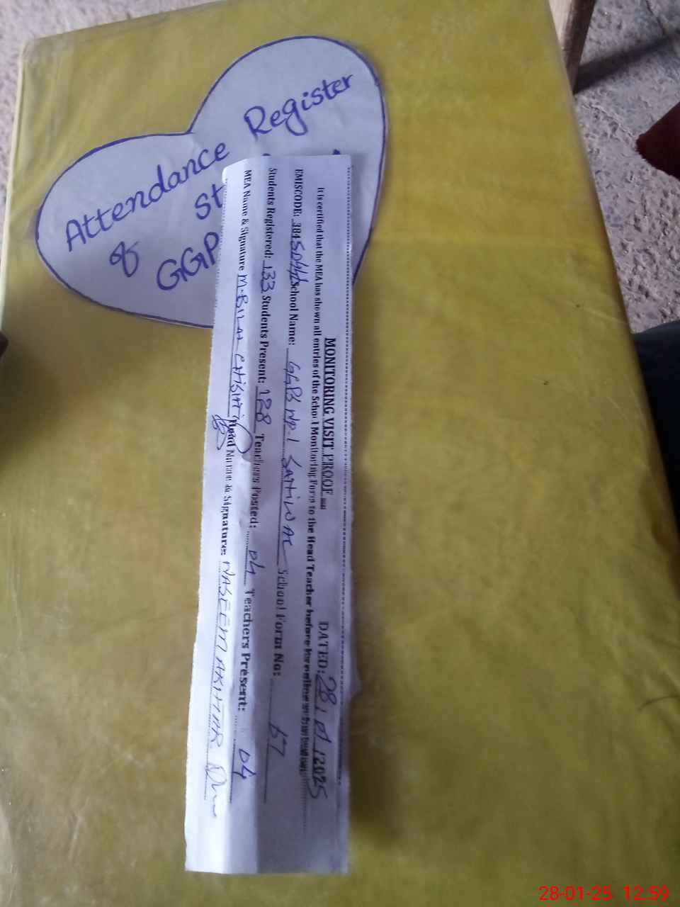 | Attendance Register | Head Teacher | MEA with School | Visit Proof |