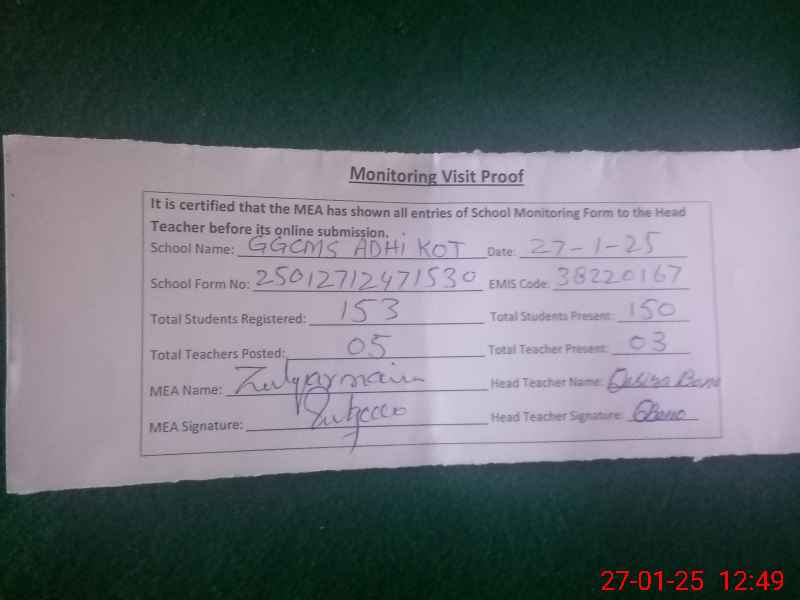 | EMIS Code: 38220167 | Name of School: GGCMS ADHIKOT | |||