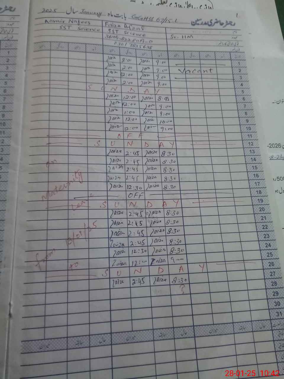 | Name: FA**** MU**** Designation: (School Headmaster's/Headmistress's) SR HEAD MISTRESS Phone/Cell Number: 03**** |