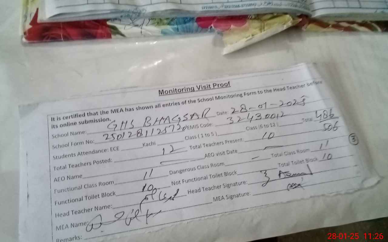 | EMIS Code: 32430012 | Name of School: GHS BHAGSAR | |||