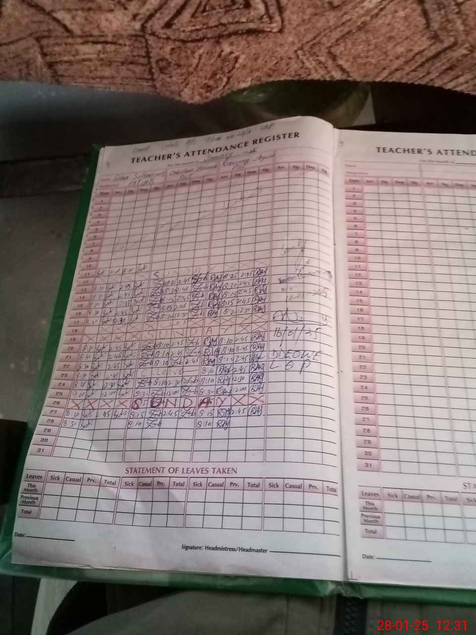 | Leave | Duty | Absent | Maternity | Medical | Ex- Pak |