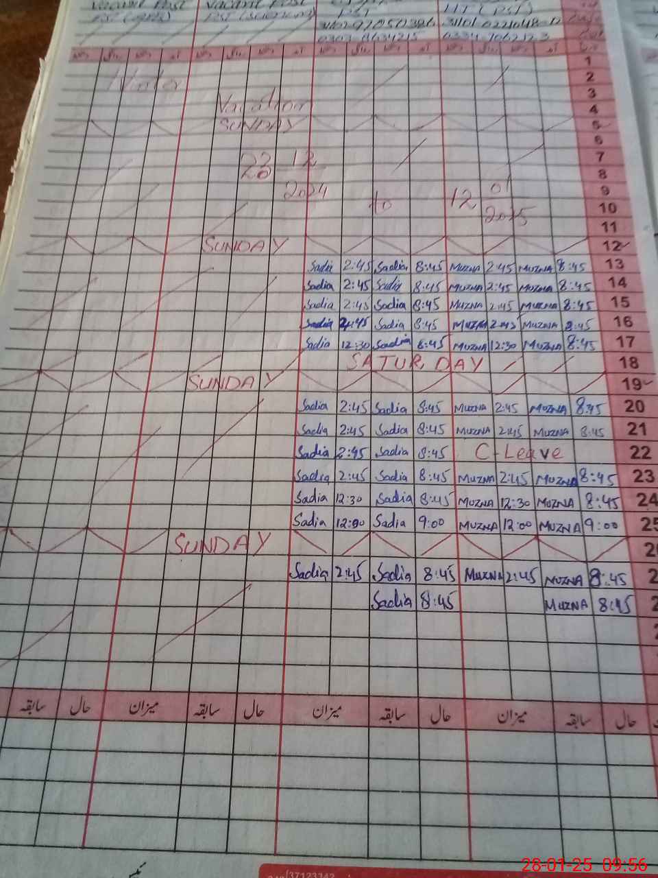 | Leave | Duty | Absent | Maternity | Medical | Ex- Pak |