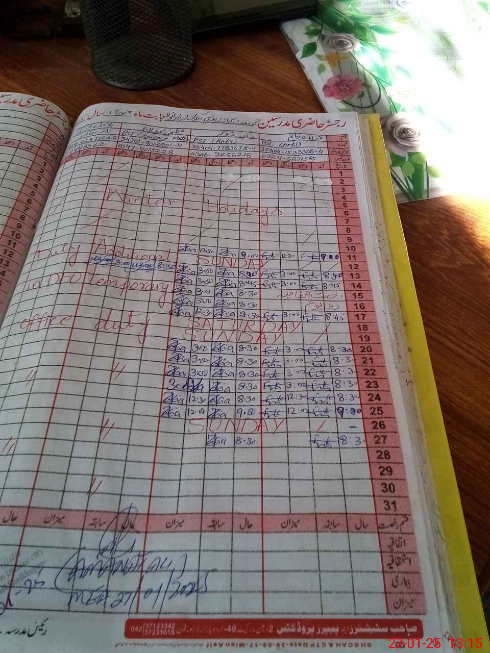 | CNIC | Full Name | Designation | R/C | Absence During Last Calender Month |