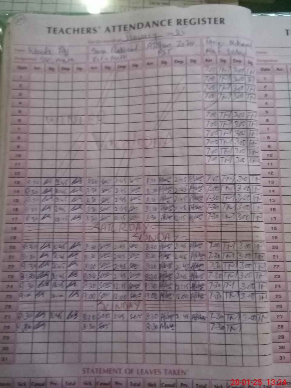 | CNIC | Full Name | Designation | R/C | Absence During Last Calender Month |