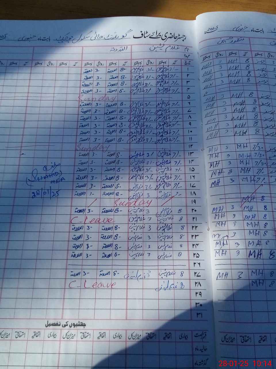 | CNIC | Full Name | Designation | R/C | Absence During Last Calender Month |