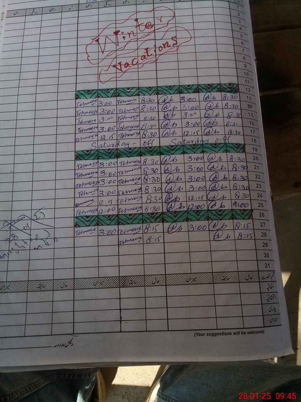 | Leave | Duty | Absent | Maternity | Medical | Ex- Pak |
