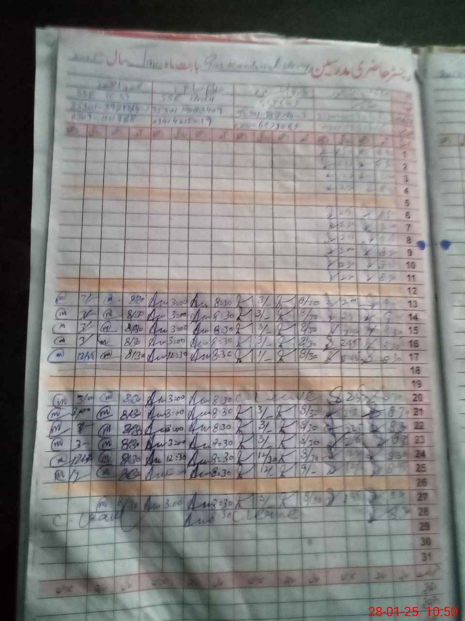 | CNIC | Full Name | Designation | R/C | Absence During Last Calender Month |