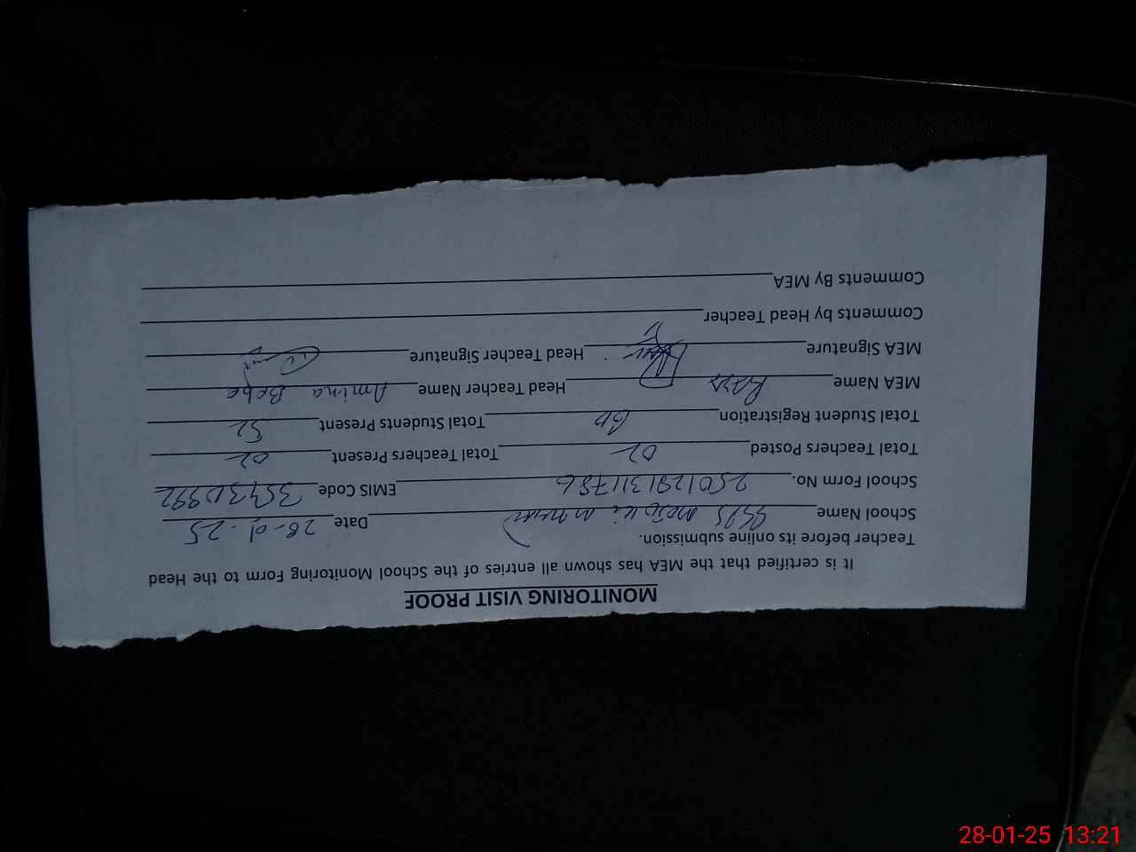 | Attendance Register | Head Teacher | MEA with School | Visit Proof |