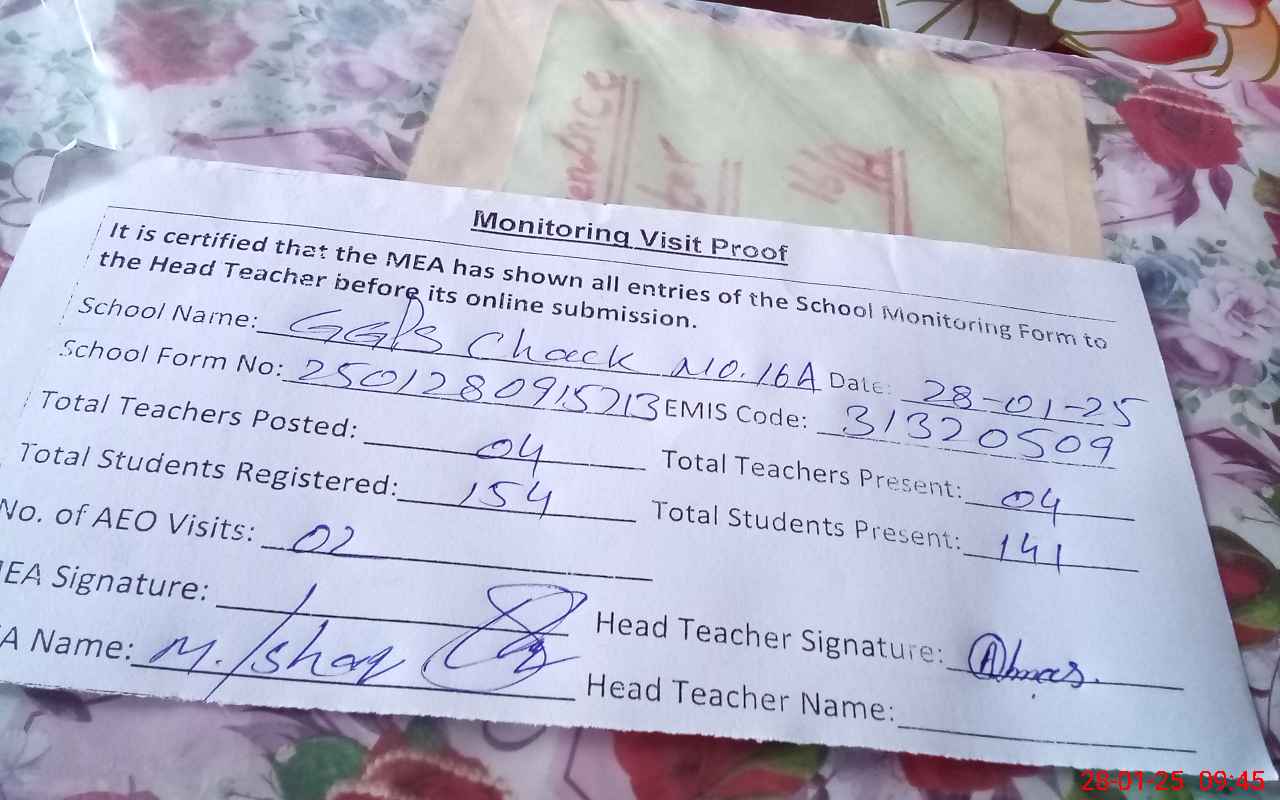 | EMIS Code: 31320509 | Name of School: GGPS CHAK NO.16/A | |||