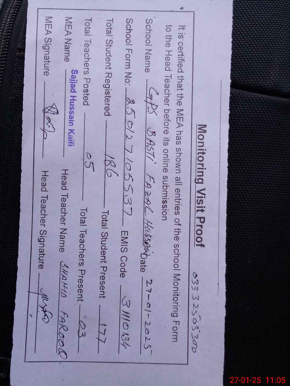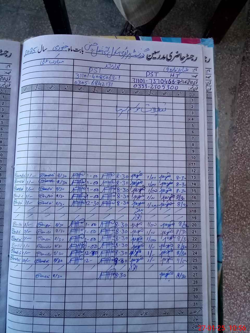 | Name: SH**** FA**** Designation: (School Headmaster's/Headmistress's) PST Phone/Cell Number: 03**** |