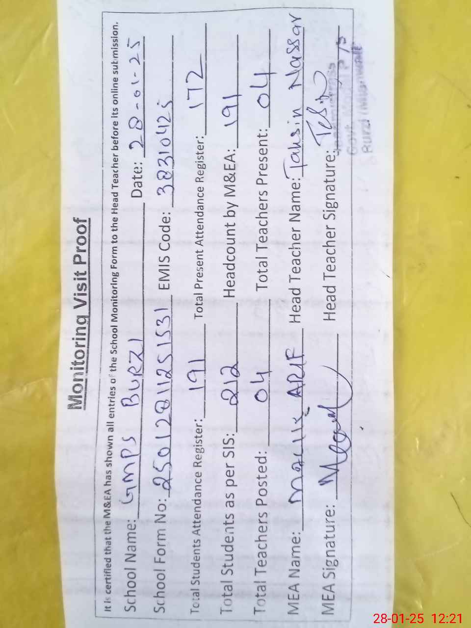 | EMIS Code: 38310451 | Name of School: GMPS BURZI | |||