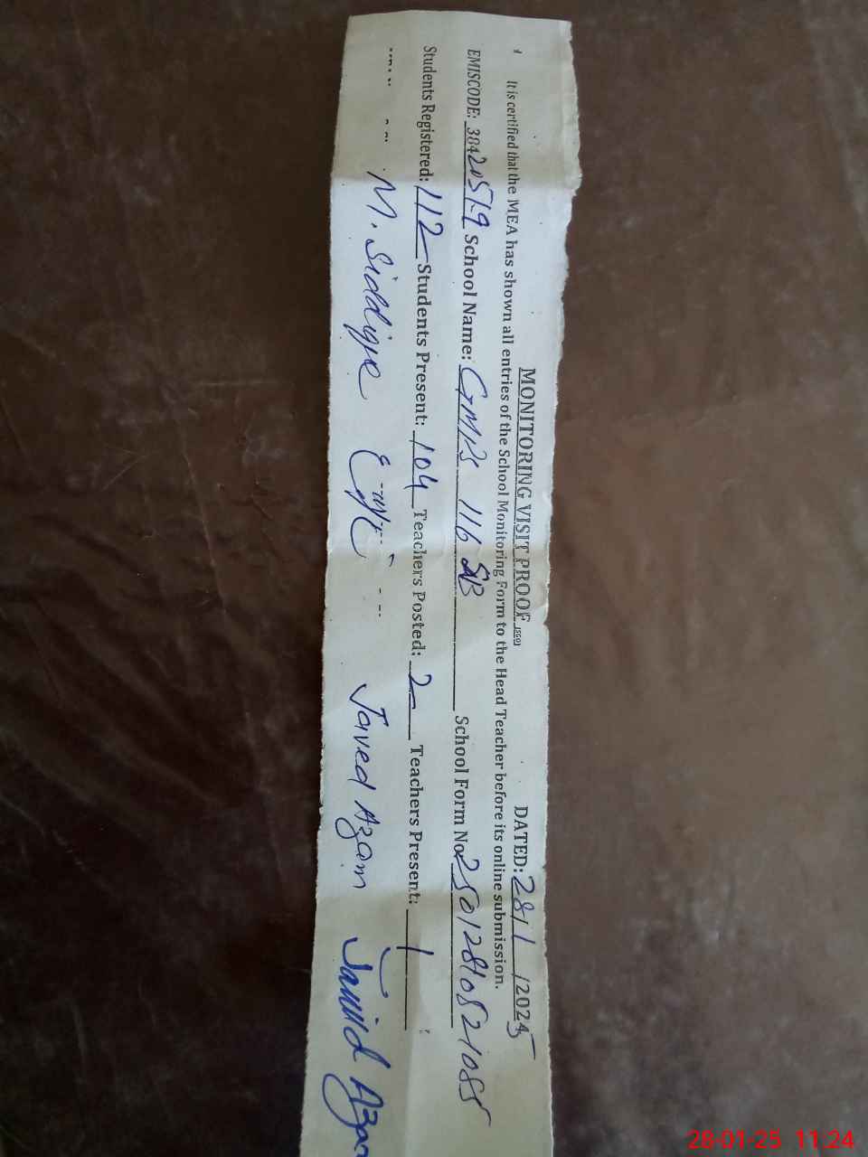 | EMIS Code: 38420519 | Name of School: GMPS CHAK NO.116 SB | |||