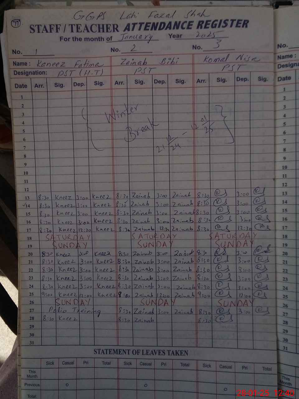 | Leave | Duty | Absent | Maternity | Medical | Ex- Pak |