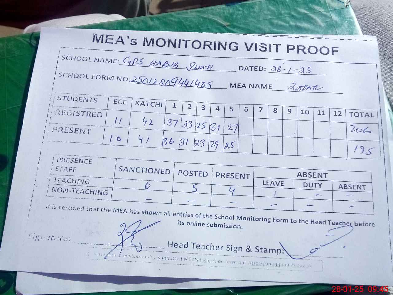 | EMIS Code: 36410182 | Name of School: GPS HABIB SHAH WALA, KABIRWALA | |||