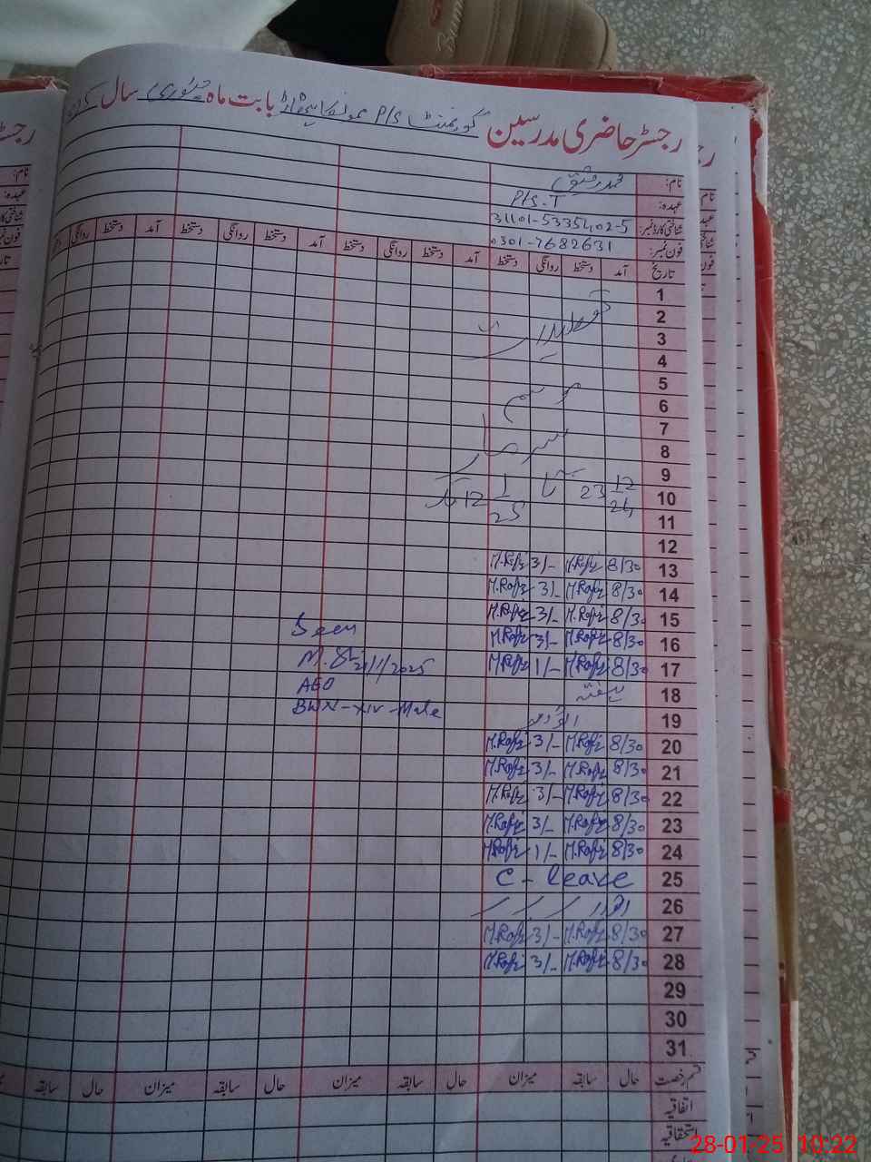 | Name: MU**** RA**** Designation: (School Headmaster's/Headmistress's) PST Phone/Cell Number: 03**** |