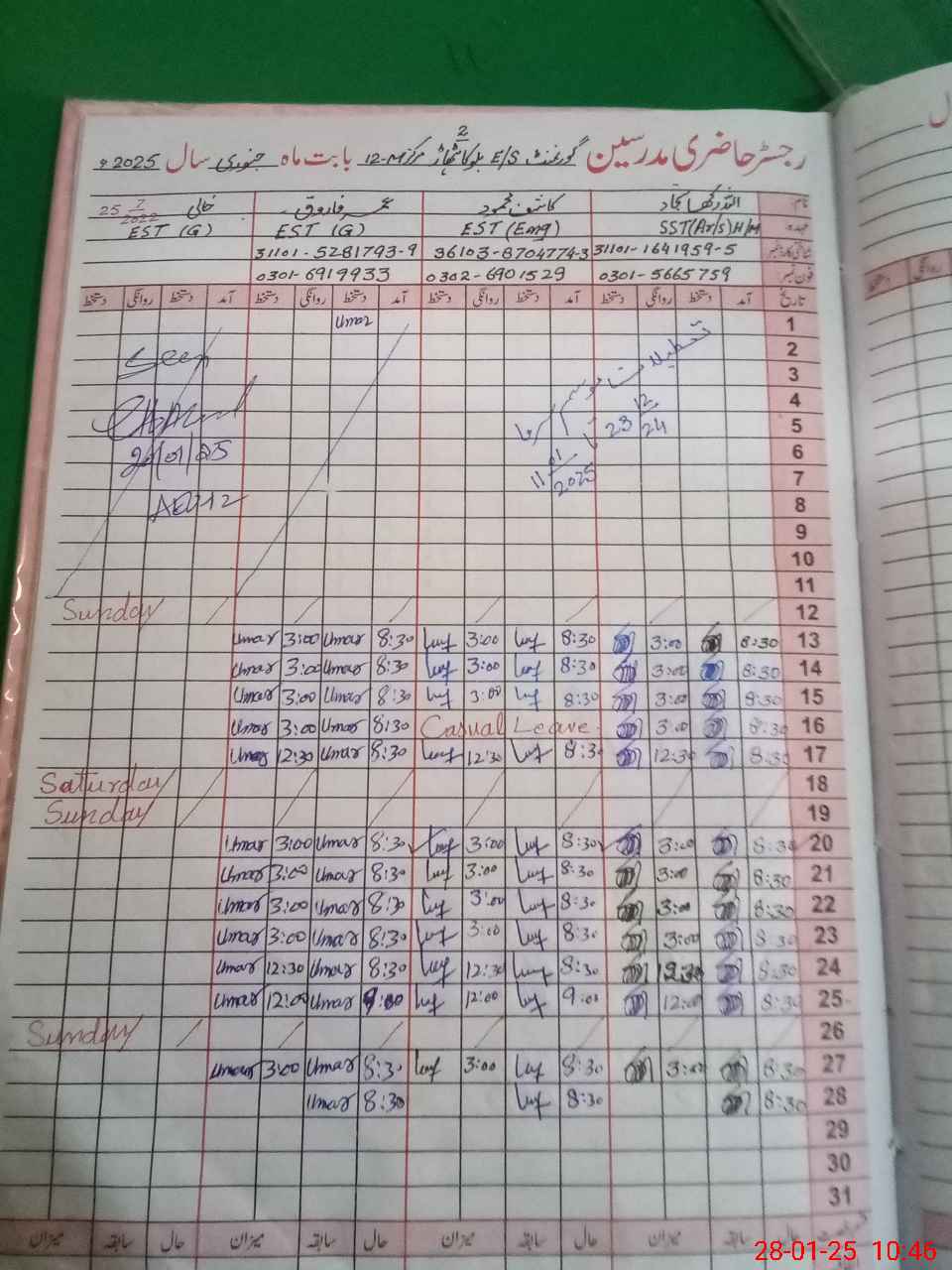 | 31**** | Ab**** Yo**** | N Q | Regular | 0 | 0 | 31 | 0 | 0 | 0 | 0 | 0 | 0 | Absent (Un-Authorized) |