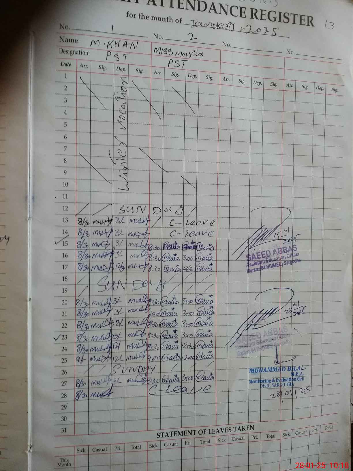 | Name: MU**** KH**** Designation: (School Headmaster's/Headmistress's) PST Phone/Cell Number: 03**** |