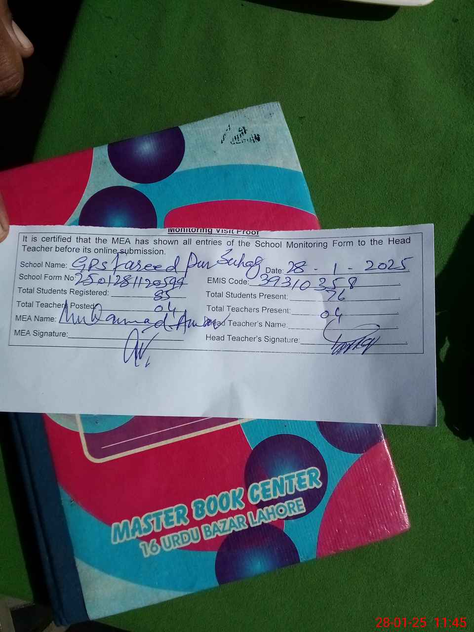 | EMIS Code: 39310358 | Name of School: GPS FARID PUR SOHAG | |||
